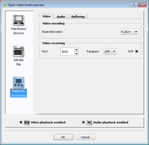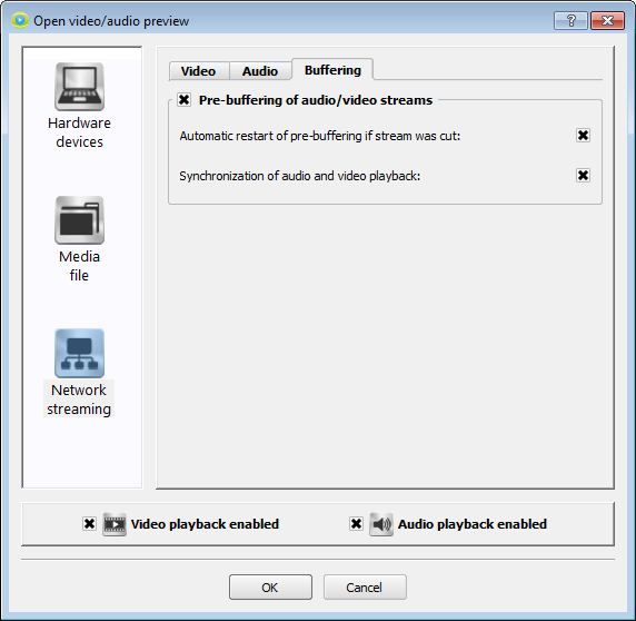 Figure: the dialog for configuring the pre-buffering which is used for the video & audio receiving